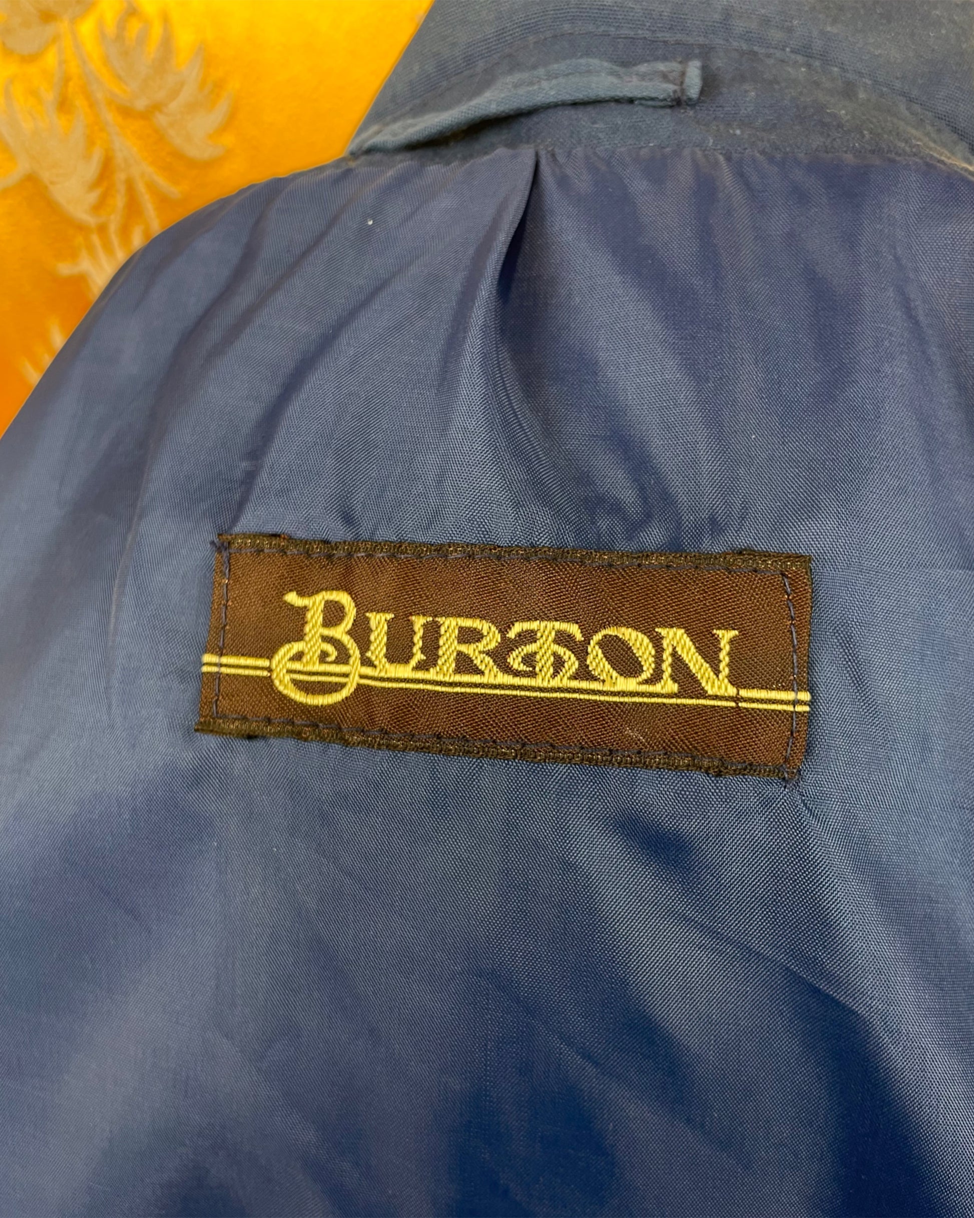 Next tonight, this stunning Burton Mac trench coat! I just love the cut of this with those huge rounded collars. These colour is stunning and is unusual with a coat like this. The condition is excellent with no sign of wear, even retaining the original spare button! It’s a very light and durable jacket being made from poly/cotton with stunning nylon blue lining. From the ever removable Burton label!