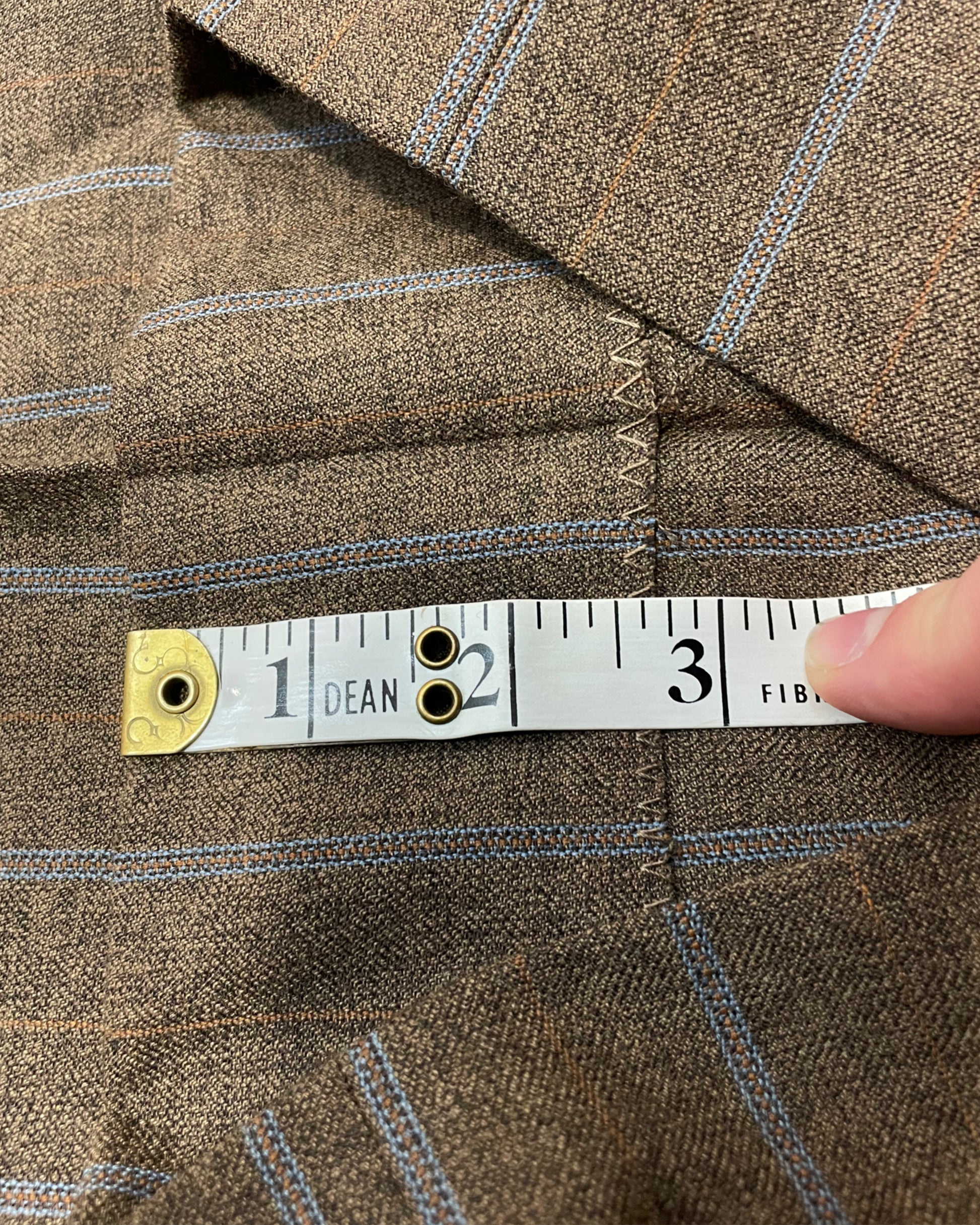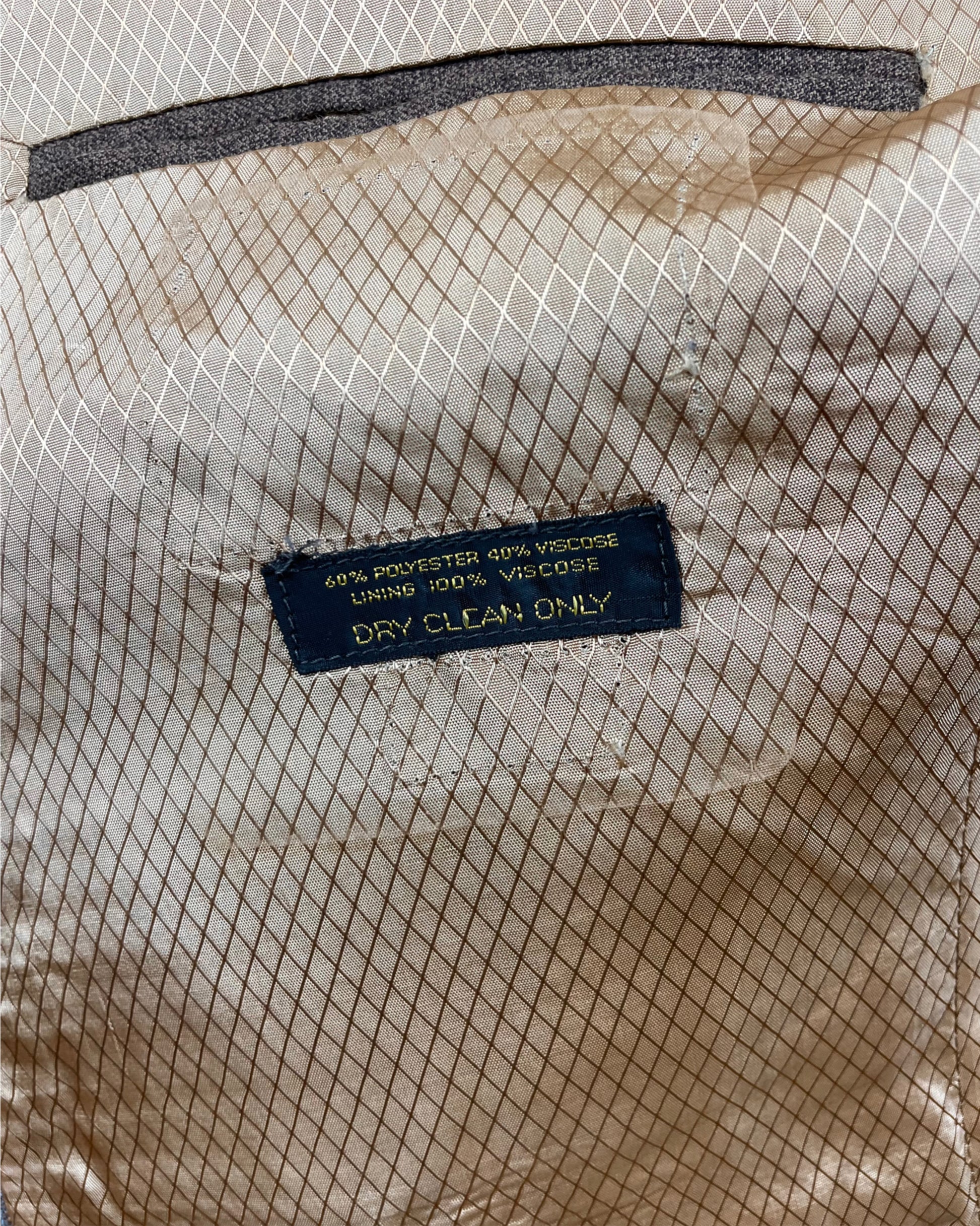 Also tonight, this exceptional late 60’s/early 70’s pinstripe flared three piece! This is a really magnificent example of a suit like this. I really love the contrast blue pinstripe against the charcoal/brown shade. The lining inside is a stunning gold colour made from viscose and really finishes this piece off well. The trousers here are flared though quite subtle and the condition overall is excellent with no real sign of wear. It’s getting really hard to find flared suits now, especially with this kind of cut. There is about 3’ to let down in the trousers, I believe these have already been brought up so it would be very easy for a tailor to lower them again. Don’t sleep on this if it’s for you!